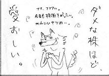頭と尻尾はくれてやれ。 ~はじめに~ はじめに 2030年01月01日 頭と尻尾はくれてやれ。 ~犬次郎相場格言集~ ここは、現代の犬畜生でありヘッポコ投資家の犬次郎が、相場格言を勉強したいけど文字だけじゃ全然頭に入らないのでとりあえず絵にしてみた!という場所ですよ!!皆様の相場格言の勉強の一助になれば幸いですよ!〇相場格言先人たちの教え!戒め!処世訓! 〇へっぽこ相場格言戒められても!諭されても!ヘッポコ投資家はヘッポコなんだもの! 〇優待相場格言嬉しい株主優待にも格言が!?いや!ただのあるあるネタか! PR